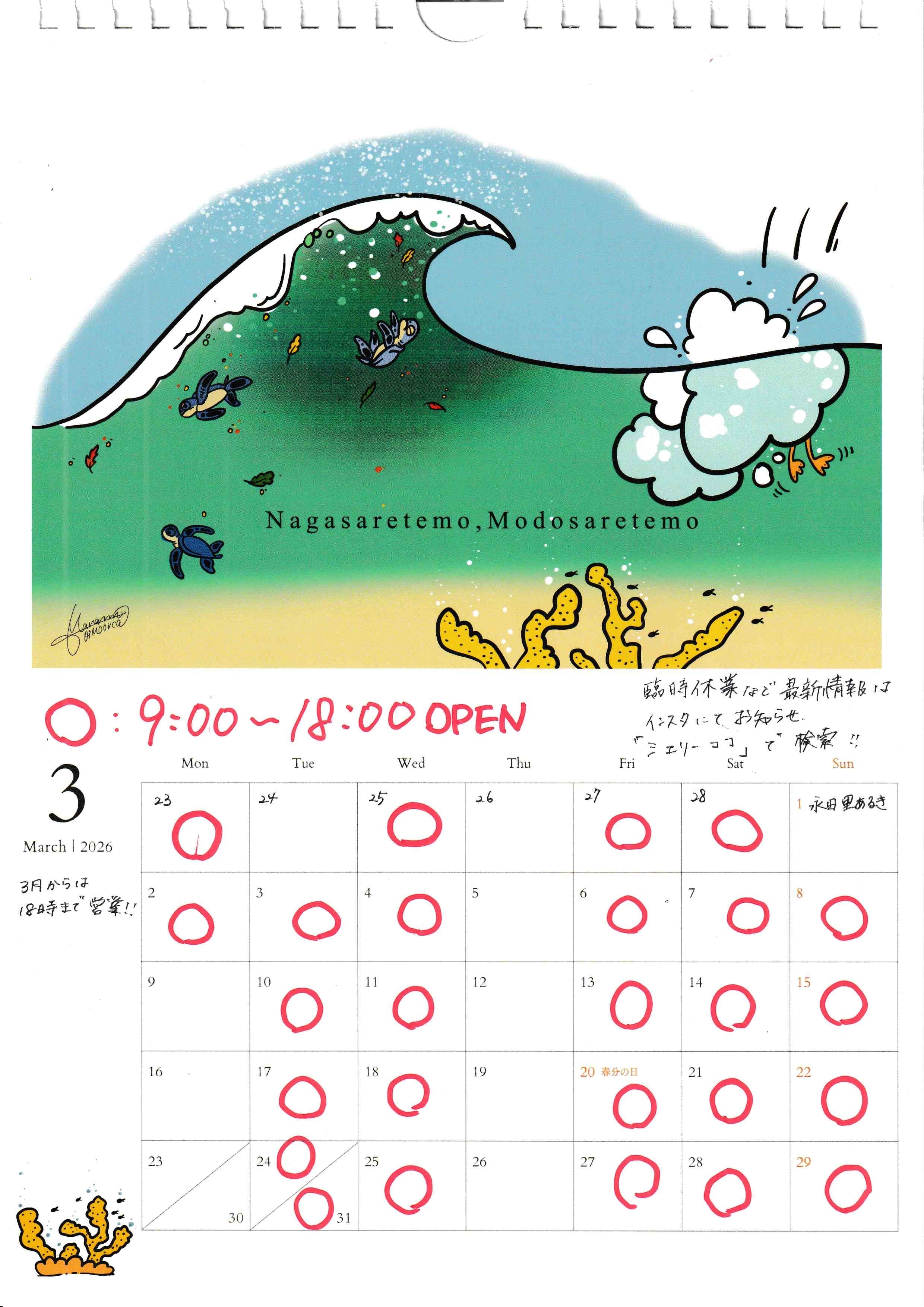 車は店前&地下駐車場または宮之浦川沿いにお停めください。